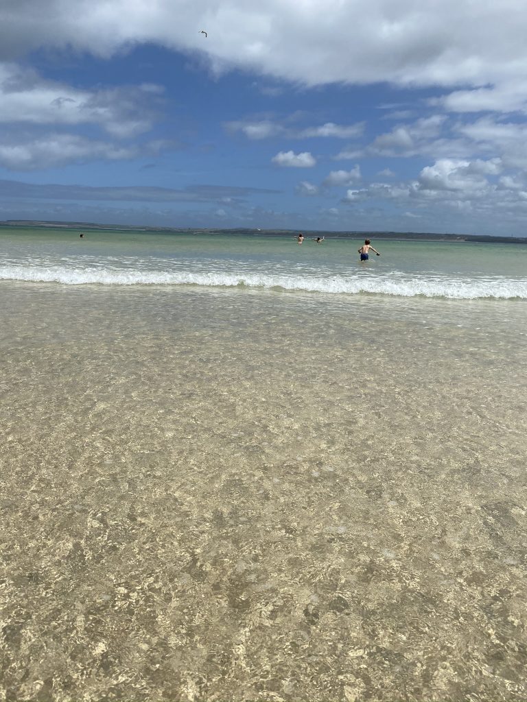 A huge expanse of soft sand and turquoise water. This photo was taken in November. We’ve spotted pods of dolphins in this location.